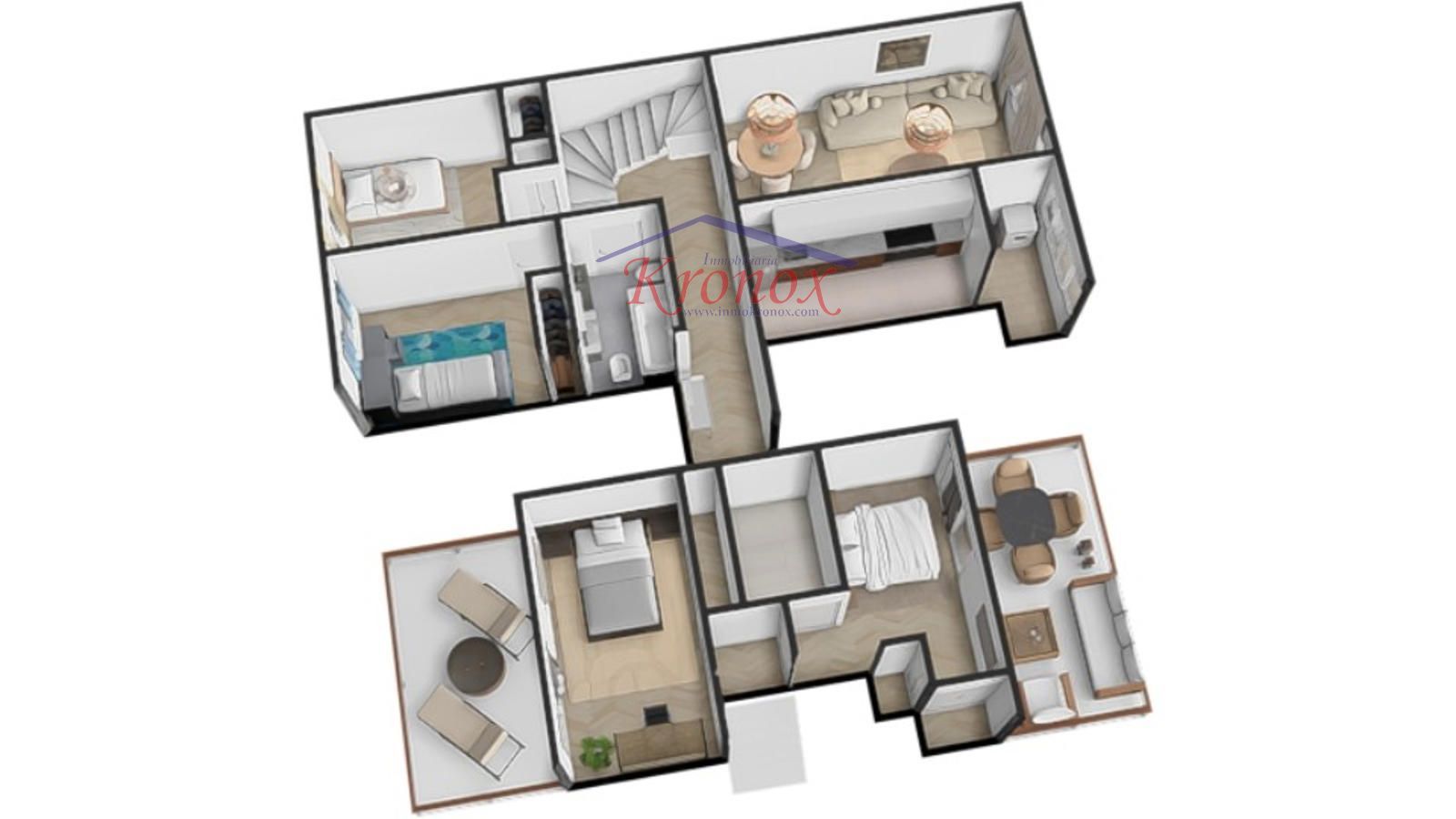 Inmobiliaria Kronox presenta en exclusiva Ático dúplex de 4 habitaciones, 2 baños y 2 terrazas con doble orientación, en exclusiva urbanización con piscina y conserje. Una vivienda única para quienes valoran la amplitud, la luz natural y el privilegio de disfrutar de espacios exteriores privados, todo ello dentro de una cuidada urbanización con zonas comunes y servicios que aportan comodidad y calidad de vida.